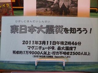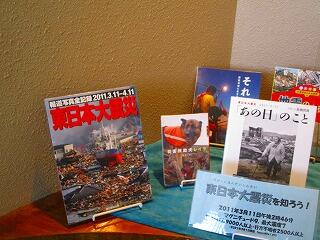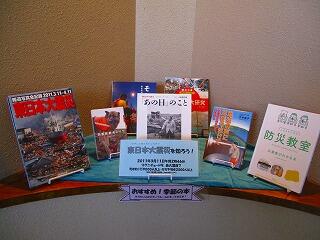 さて,おすすめ!季節の本のコーナーでは『東日本大震災』に関する本です。東日本大震災は,今から13年前の3月11日に起きた地震です。地震だけでなく防災に関する本も展示してあります。