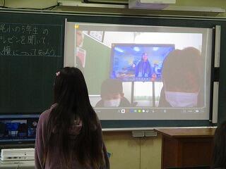 今年度、5年生が交流をしている鳥取県の小学校とのオンライン授業の日でした。今回は,「人権」について,鳥取県車尾小学校の5年3組の友達の発表を聞きました。