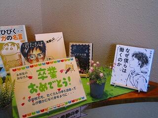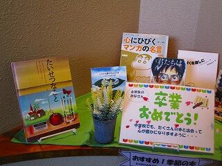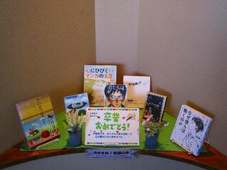 おすすめ!季節の本のコーナーは,6年生の卒業をお祝いしての本の紹介です。春休みに読んでみてください。
