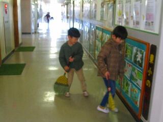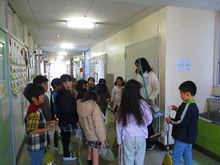 1年生は,掃除の終わりにみんなで集まって,がんばったことを確認しています。