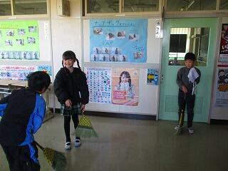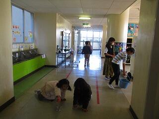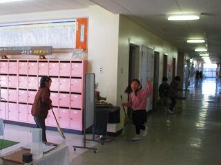 お客様が通る玄関に廊下,6年生が通る昇降口,体育館,外の通路・・・在校生が力を合わせてきれいにしていきます。