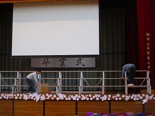 6年生の卒業をお祝いする式場ができました。3年生,4年生,5年生が自分の役割をきちんと果たしていました。集中して仕事できる手賀東小学校の子供たちです。