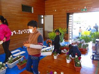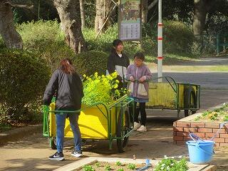きれいになったプランターを並べていきます。人数は少ないですが,集中して手際よく仕事していきます。