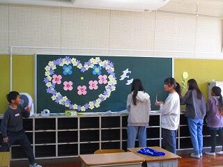 6年生の教室担当の児童が工夫して飾り付けています。ん??飾り付け方の写真と違うけれど・・・なんだかとっても素敵です。