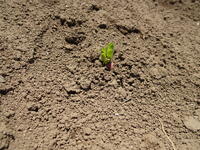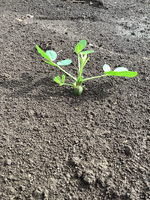 5月24日に植えた落花生の種から、6月2日に芽が出ているのを発見しました。どうやら落花生の芽は種が土の中から地面の方に出てきて、種が割れて子葉が出てくるようです。大きさはまだまだ小さいですが、これから大きくなっていきます。落花生の成長を楽しみにしてください。