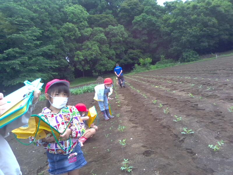 今日は落花生の草取りに行きました。落花生の葉と他の葉を見分けることが、とっても大変でした。一年生に「この葉だよ」と教えたりもしました。