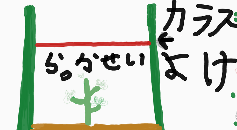 落花生のところに糸が張ってありました。最初はそれはなんだろうと思っていました。でも農家の方に聞いたら、「これはカラスよけだよ。」と教えてくれました。これを聞いたときは自分もびっくりしました。これはカラスよけなんだぁと思ったからです。