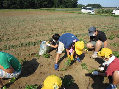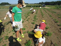 7月1日の朝、片山地区の児童全員で落花生の畑周りの雑草抜きを