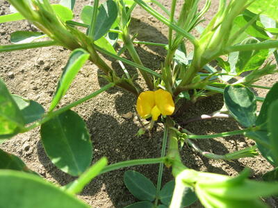 落花生は花が咲いていて、順調に育っています。早く収穫するのが楽しみです。(6年 はると)