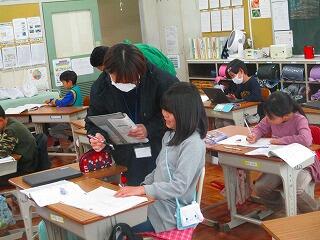 家庭科室や理科室,お兄さんお姉さんたちの教室など皆で手分けをしたので,沢山の教室を調べることができました。「もうすぐ2年生」の思いが勇気になりました。