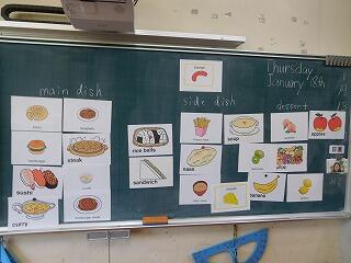 ALTが、みんなのために英語のかるたを用意してくれました。帰りの時間に5年生でやりました。今まで習った英語を聞き取り、言われているお題のカードを取ります。