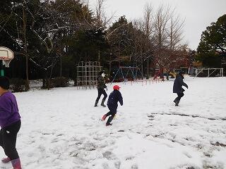 校庭で、久しぶりに氷鬼をしました。トラックの中だけというルールにしましたが、鬼3人、逃げが6人で、あまりつかまりませんでした。とても良い天気の中、のびのびと走っていました。