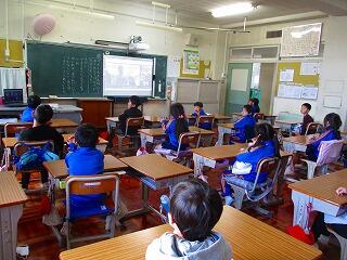今年度、5年生が交流をしている鳥取県の小学校とのオンライン授業の日でした。今回は,「人権」について,鳥取県車尾小学校の5年3組の友達の発表を聞きました。