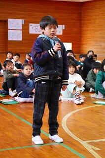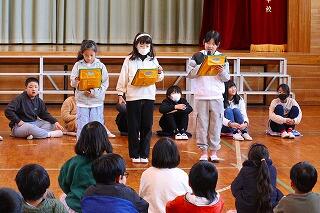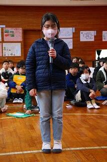 旧児童会役員の人は,今日の引き継ぎ式で仕事が終わります。今日まで,みんなのためにがんばってくれてありがとうございました。そして,新児童会役員は,6年生を送る会が最初の仕事となります。今日全校児童のみんなに話したことを忘れないで,がんばってください。