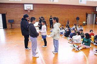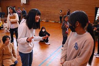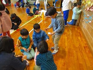 4年生が担当したのは,全校ゲームです。山ゆりリレーなどで1年間一緒に活動してきたチームで行います。