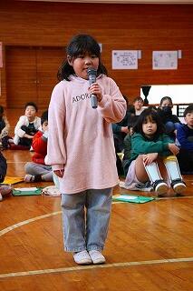 旧児童会役員の話の後は,新児童会役員の抱負を聞きました。