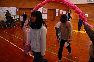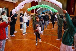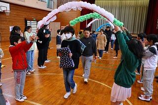 2年生の花のアーチに見送られ,6年生を送る会が終わりました。