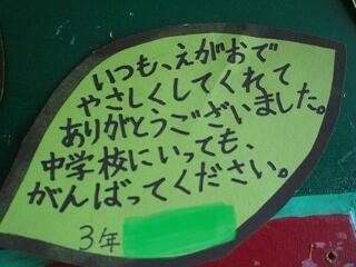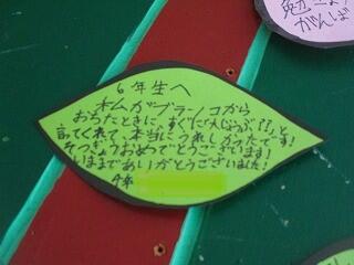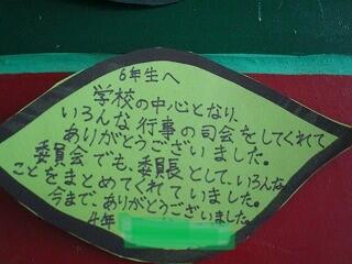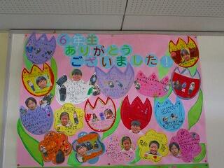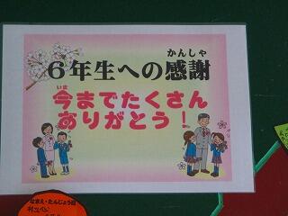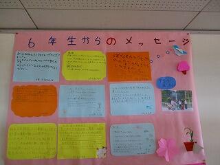 1年生から5年生が卒業していく6年生にむけてのメッセージです。