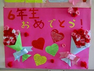 掲示板には,各学年のお祝いのメッセージが掲示されてきました。