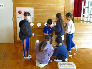 新児童会役員の初めての活動でした。急な変更もありましたが,6年生に喜んでもらえるように精一杯がんばってくれました。新児童会役員の人たちにも大きな拍手を送ります。ありがとうございました。