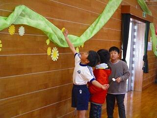 6年生の卒業をお祝いする式場ができました。3年生,4年生,5年生が自分の役割をきちんと果たしていました。集中して仕事できる手賀東小学校の子供たちです。