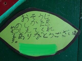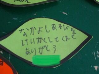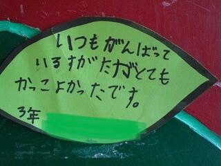 それぞれの今までたくさんありがとう!の気持ちが葉っぱに書かれています。