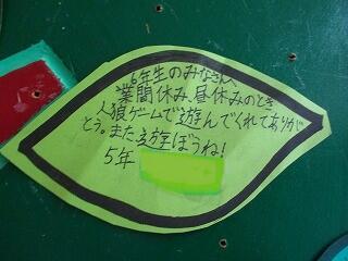 みんなの「ありがとう」がたくさんあります。6年生と過ごせるのもあと5日。思い出をたくさん作ってほしいです。