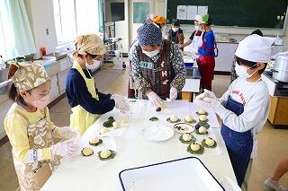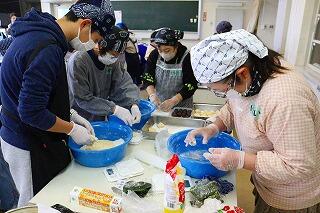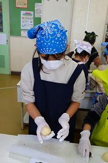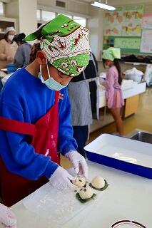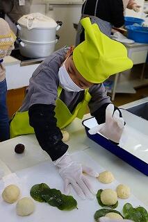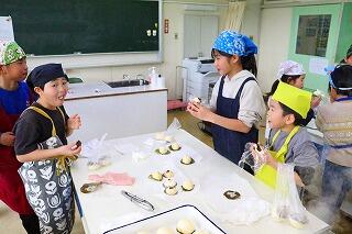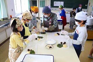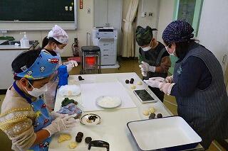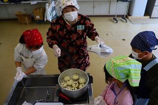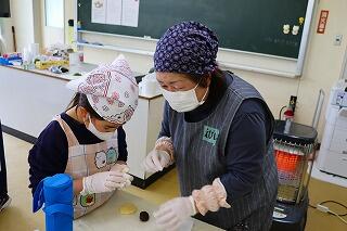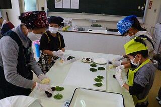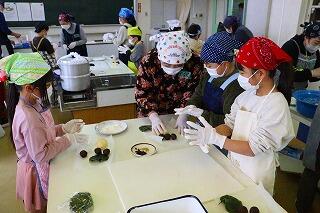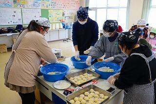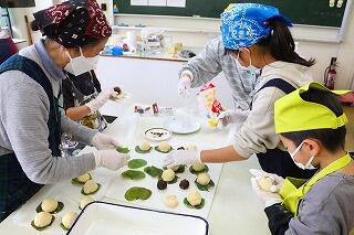 3年生のばらっぱまんじゅう作りでは,朝から地域の方が家庭科室で準備してくださいました。