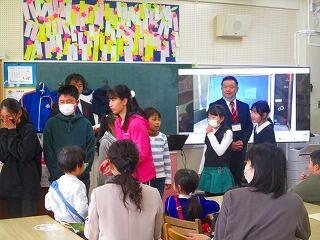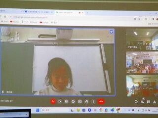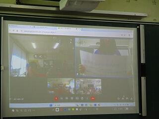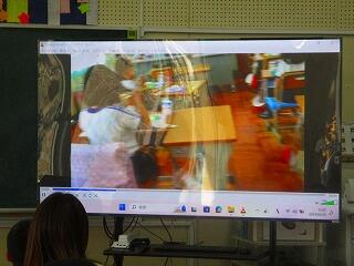 5年生の教室では,児童会担当の児童が終わりの言葉を話していました。最後には,「バイバーイ」と手を振る姿も見られました。オンラインでの集会も人とのふれあいが楽しいようです。
