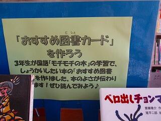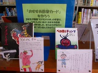 3年生が国語の「モチモチの木の学習」で,紹介したい本の「おすすめ図書カード」を作りました。