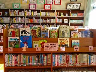 学校図書館支援員の先生が動物の本を並べてくれています。図書委員の児童も貸し出しで空いたスペースを見つけると本を探しておいてくれるそうです。