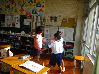 1年生は,掃除の終わりにみんなで集まって,がんばったことを確認しています。