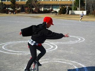 1月最後の昼休みに一輪車検定を行いました。業間休みや昼休みにコツコツ練習してきた子どもが検定を受けに来ます。
