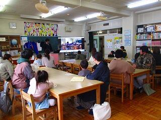 説明会の後は,1年生が作成した手賀東小学校紹介動画を親子で見ていただきました。