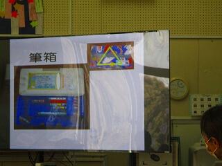 画面の児童が説明をしている声がスピーカーから聞こえているのです。欠席した児童の役割分担を登校している児童がかわるのではなく,オンラインでつないで説明しています。