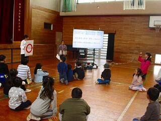 前日にリハーサルしているのでバッチリです。爆弾ゲームでは,2回も爆弾(ボール)が止まってしまい,質問されている新1年生もいました。5年生の質問にちゃんと答えることができていました。