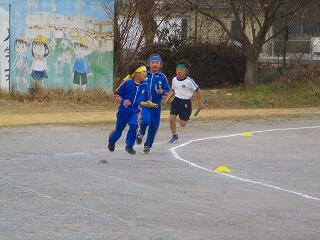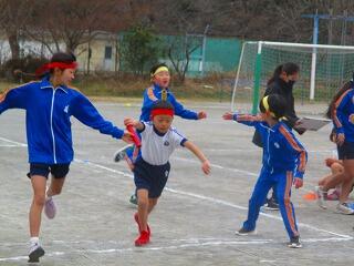 4チームに分かれて,リレーを行っています。走順は,6年生が決めています。