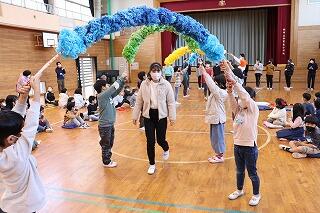 在校生から卒業生へ、ありがとうの気持ちを込めて体育館の装飾を行いました。