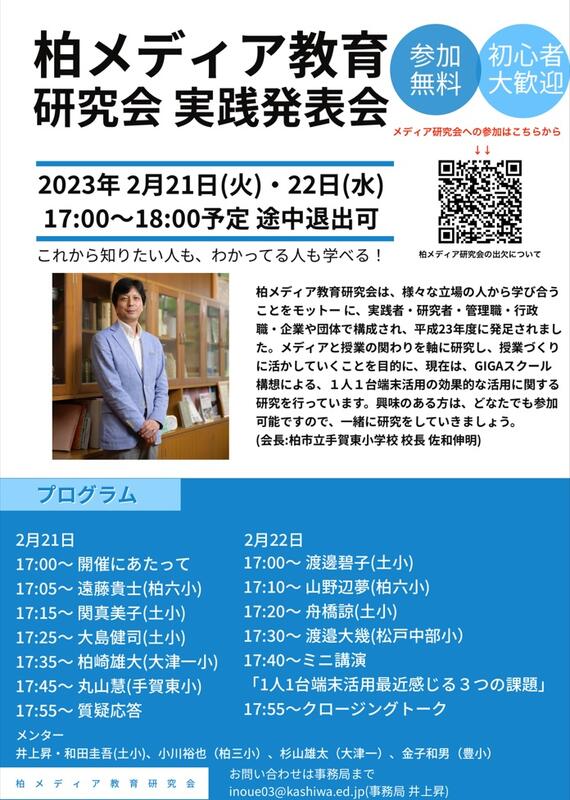 2月21日、22日の2日間、柏メディア教育研究会のオンライン実践発表会を行っています。