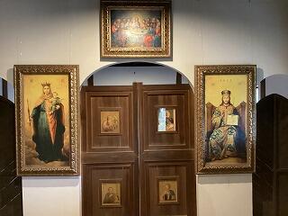 イコンという絵もあります。天上の国と地上の国の窓として、最もあがめられるものとされています。今あるイコンは、山下りんさんが描いた絵で、御茶ノ水のニコライ堂からもらったものです。旧手賀教会堂にあるイコンはレプリカで、本物は、新手賀教会に移されています。