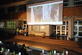 手賀地区には、明治14年につくられた、旧手賀教会堂があります。手賀地区の子どもたちは、140年も前につくられたものが、今でも大事に残されているわけを調べました。150周年記念式典では、見学に行った時の写真を動画にしたものをスクリーンに映して、プレゼンテーションをしました。