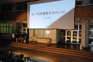 古墳グループは、実際に北ノ作古墳群に足を運び、現状の調査と今後の展望についてをプレゼンテーションしました。