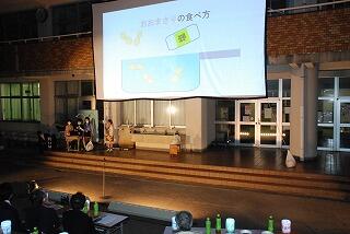 ジャンボカボチャグループは、ジャンボカボチャコンテストで優勝することを目標に育て、どのくらいの大きさになったのかということ、なぜこんなにも大きく成長することができたのかということについて今まで撮りためていた写真を動画にまとめ、スクリーンに映してプレゼンテーションしました。