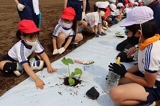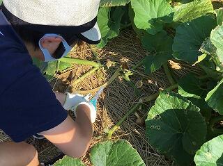 そこで、3つ目の理由として、農家の人たちが、苗の植え方、囲いのつけ方、つるや花の切り方、藁の敷き方、肥料のやり方を教えてくださり、必要な道具や農薬などの準備をしてくださりました。そのおかげで、害虫に食べられることもなく、カボチャが元気に育つことができました。
