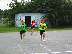 昼休みの後半は,入場の練習をしました。トラックの中央を真っ直ぐに入場します。中央の線を意識しながら,2人で入場します。