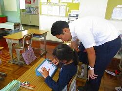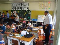 間近で始筆・走筆・終筆の筆使いを見ることができました。大きい学校と違って近くで,筆使いを見てもらえたり,子どもの表情を見ながら指導したりできるので,子供たち一人一人がよく見えるというお話しをいただきました。