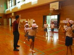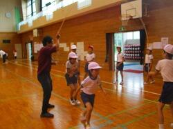 金曜日の山ゆりタイムの時間です。今日は朝から雨が降っているので,体育館で長縄をしました。