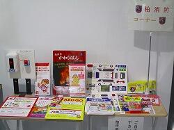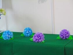 カラーペーパーで作ってあるふわふわのあじさいです。遠くから見ると本物のあじさいがあるようです。お隣は,消防からのお知らせです。手賀近隣センターのお隣の消防署と連携してコーナーを作っているとのことです。
