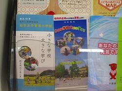 2年生は,図書の時間です。静かに本を読んでいます。4年生の作品と本の紹介のコーナーもあります。