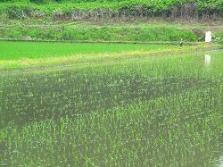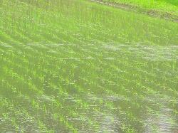 左が子供たちが植えた苗たちです。右は,機械が植えた苗です。